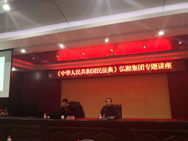 為認真學(xué)習(xí)宣傳貫徹民法典,進一步增強集團公司干部職工學(xué)法、懂法、守法,全面提高法治思維和法律風(fēng)險防范意識。12月17日下午,弘湘集團舉辦了民法典專題講座。講座特邀湖南大學(xué)法學(xué)院副教授張紅主講,集團公司黨委書記、董事長劉軍,黨委副書記、總經(jīng)理張雨民及領(lǐng)導(dǎo)班子成員出席,黨委委員、副總經(jīng)理尹小亮主持,集團公司90多位員工參加學(xué)習(xí)培訓(xùn)。