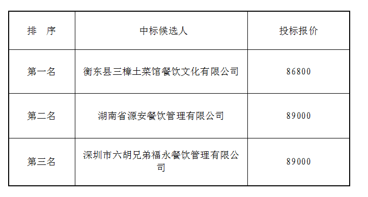 衡陽(yáng)市衡府賓館有限公司(養(yǎng)正園)食堂勞務(wù)公開比選候選人公示