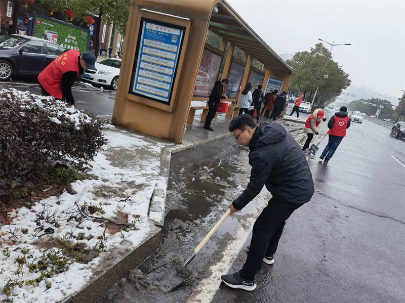 支部一聲號召,大家積極參加,穿上衡陽群眾紅馬褂,人手一把鐵鏟,紛紛來到集團公司大門前的蒸湘區(qū)西外環(huán)道路上。道路上堆滿了厚厚的積雪,給行人、車輛通行帶來不便。大伙兵分兩路開始行動,雖然寒風刺骨,但大家服務熱情很高,時刻不忘中國共產(chǎn)黨員的初心就是為人民服務。