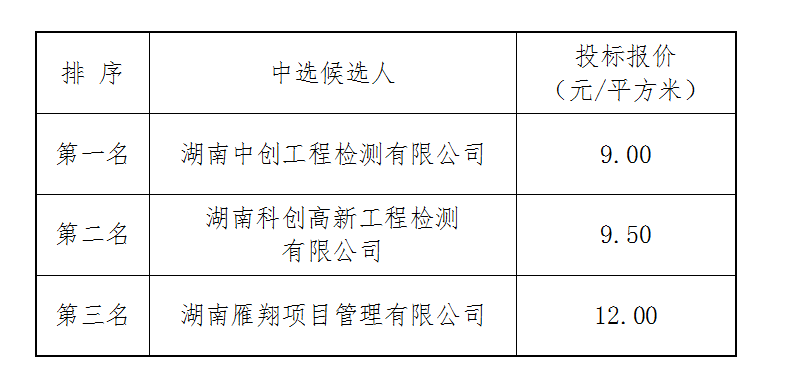 房屋建筑安全隱患專項整治檢測工程中選候選人公示