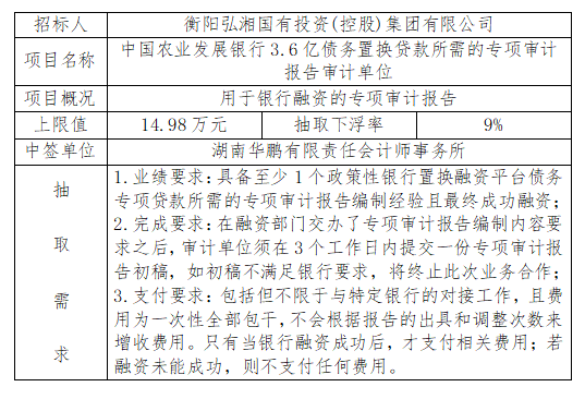 中國(guó)農(nóng)業(yè)發(fā)展銀行3.6億債務(wù)置換貸款所需的專項(xiàng)審計(jì)報(bào)告審計(jì)單位隨機(jī)抽取結(jié)果公示