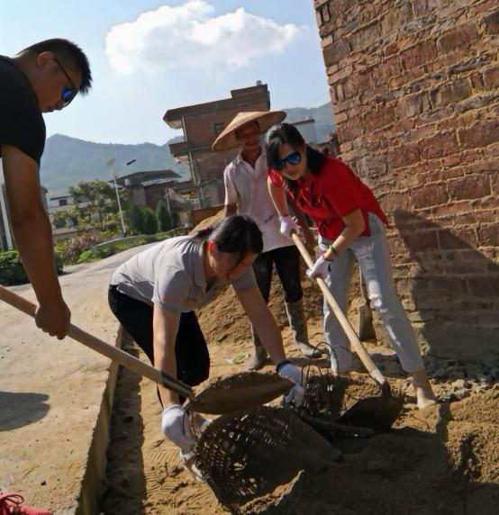 勞動的人群中有幾個熟悉的身影特別打眼,頭戴一頂草帽的董事長王建華,全然沒有城里人對農(nóng)事的陌生,只見他熟練地挑起一擔卵石,扁擔都被這一挑沉重的卵石壓彎了腰,但他健步如飛、體態(tài)輕盈;身穿紅色T恤衫的李晶副總,全然不顧已經(jīng)疼了幾個月的手臂,抬起一筐河沙就走;李詠琴副總也不示弱,將剛剛還暈車的不適拋到腦后,毫不顧忌炎炎烈日對肌膚的傷害,在烈日下?lián)]鏟、運砂......