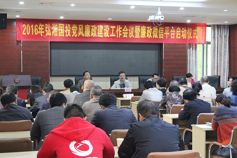 會(huì)上,各部室、各子公司主要負(fù)責(zé)人還分別向集團(tuán)公司黨組遞交了《弘湘國投集團(tuán)2016年度黨風(fēng)廉政建設(shè)和反腐敗工作任務(wù)責(zé)任書》,并舉行了“廉政弘湘 助力發(fā)展”微信平臺啟動(dòng)儀式。